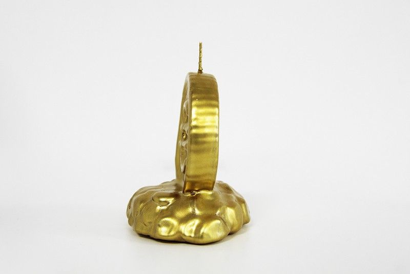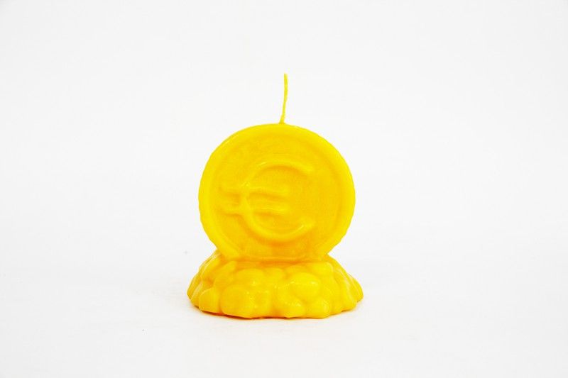 Espelma en forma d'euro. Simbolitza la imatge dels diners. Ideal per incorporar a rituals de desig material i entrades de diners. Les seves mides són 10 cm x 9,2 cm.