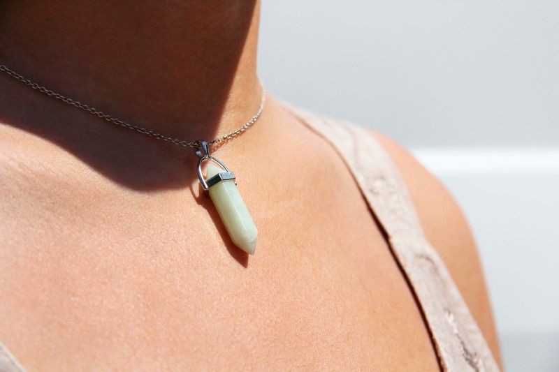 El jade verd és un mineral que simbolitza la puresa, serenitat i saviesa. Es relaciona amb el cor chakra, amb l'amor i l'harmonia. Es considera un mineral que emet calma i proporciona neteja i protecció.